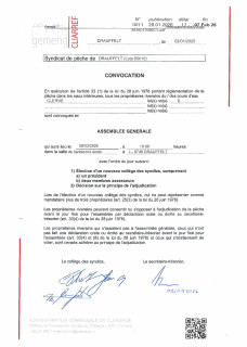 Fischersyndikat Drauffelt - Einberufung Generalversammlung