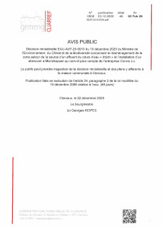 0008 Öffentliche Bekanntmachung EAU-AUT-25-1153 bezüglich der Wasserbewirtschaftung im Rahmen des Betriebs einer Mikrobrauerei in Heinerscheid