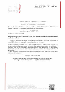 0012 Commodogenehmigung für die S.A. TARKETT GDL betreffend die Änderung des Erlasses vom 6. April 2023 betreffend die Nutzung von Installation zur Produktion von Kälte