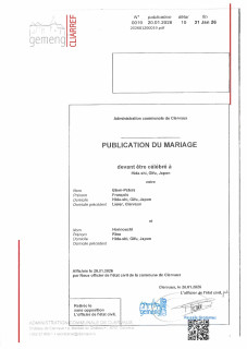 Veröffentlichung der Eheschließung Blom-Peters François - Horinouchi Rina