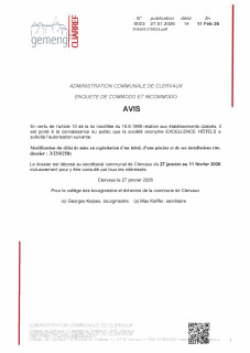 0023 Commodo-Genehmigungsantrag der S.A EXCELLENCE HÔTELS betreffend die Verlängerung der Nutzungsfrist eines Hotels, eines Schwimmbads und ihrer Installationen in Clerf, 10, Grand-rue
