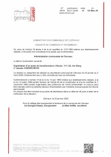 0018 Commodogenehmigung für die GEMEINDEVERWALTUNG CLERF betreffend die Nutzung eines Transformators in Reuler, 117-123, Am Bierg