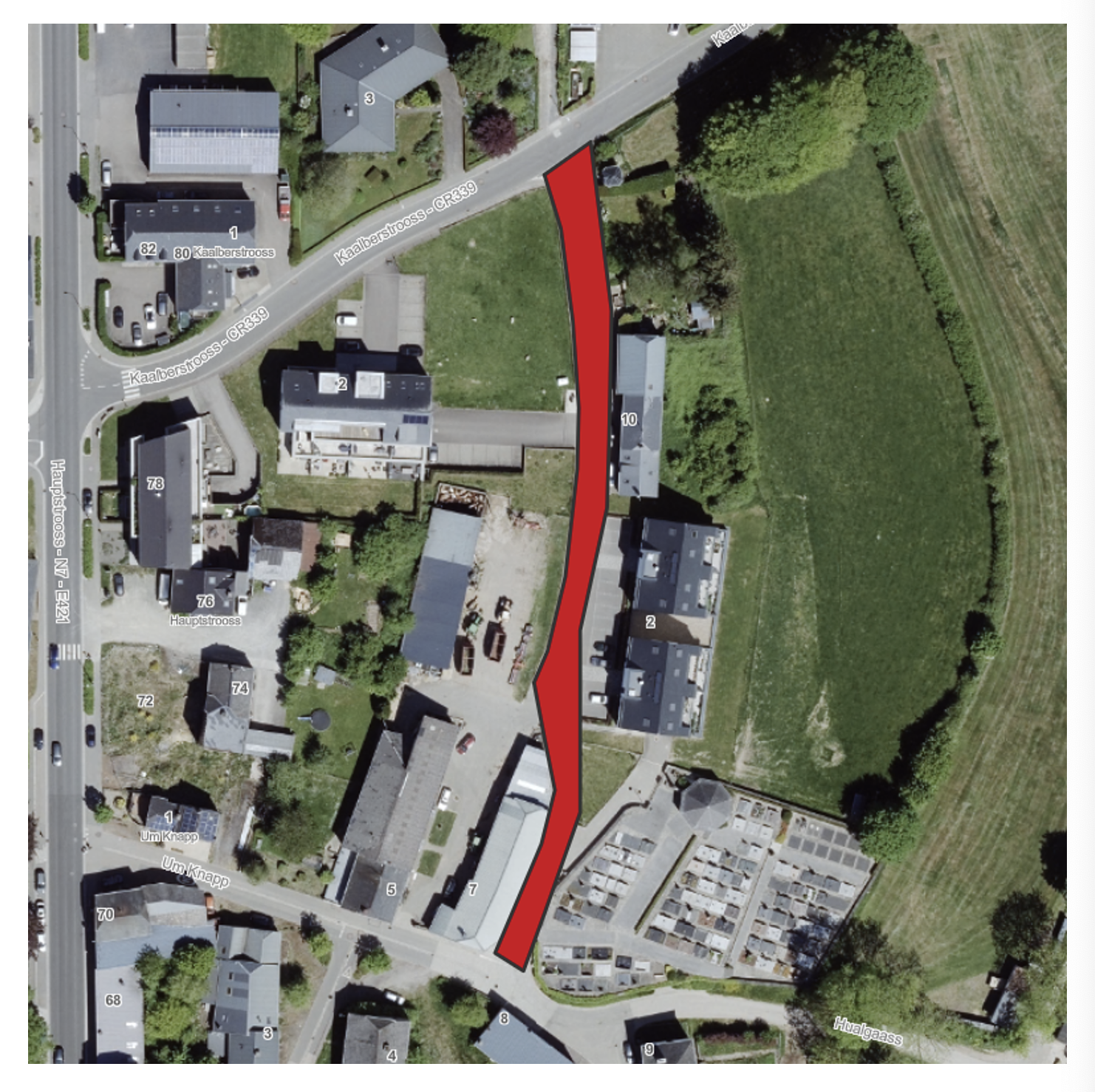 Pendant toute la durée des travaux, aucun stationnement de véhicules ne sera autorisé sur le tronçon de la rue « Huserknapp » concerné et à la rue « Kierfechtstrooss ».