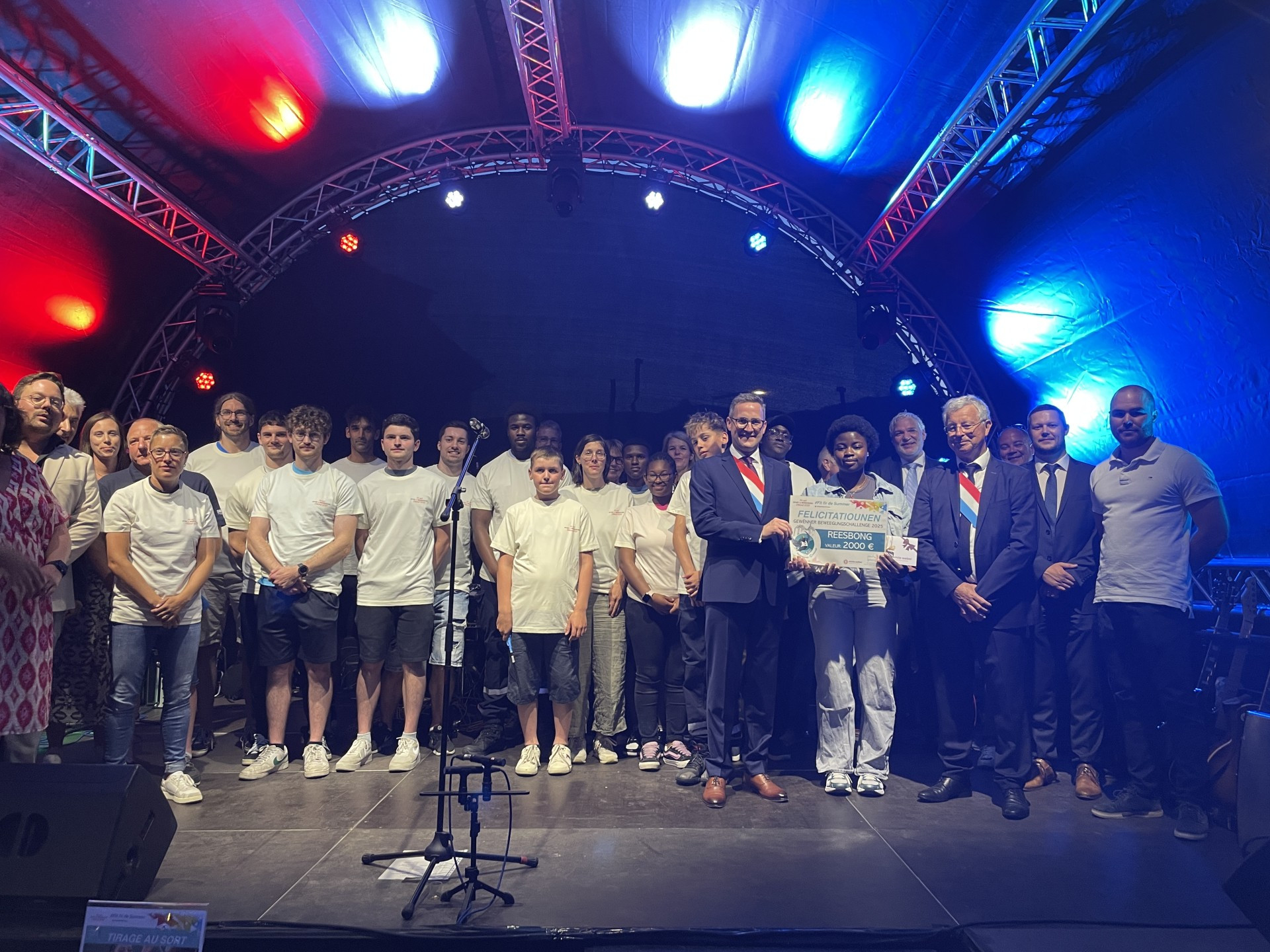 Le grand prix, un chèque de 2.000 €, a été tiré au sort parmi les 14 personnes ayant récolté 11 points ou plus. Il a été remporté par Catherine ADJOGBOVI - félicitations à elle ! Le tirage a eu lieu à l’occasion de la fête populaire, la veille de la fête nationale, où le prix lui a été officiellement remis.